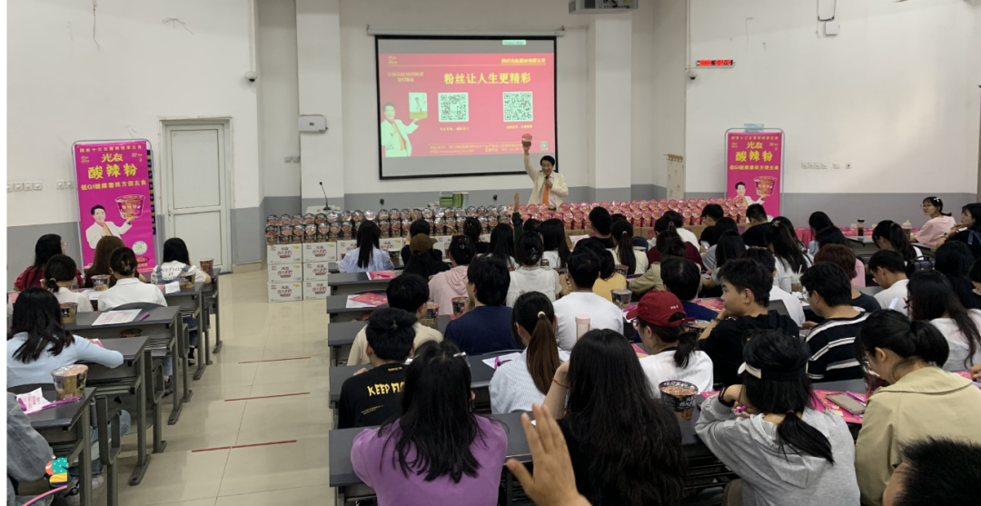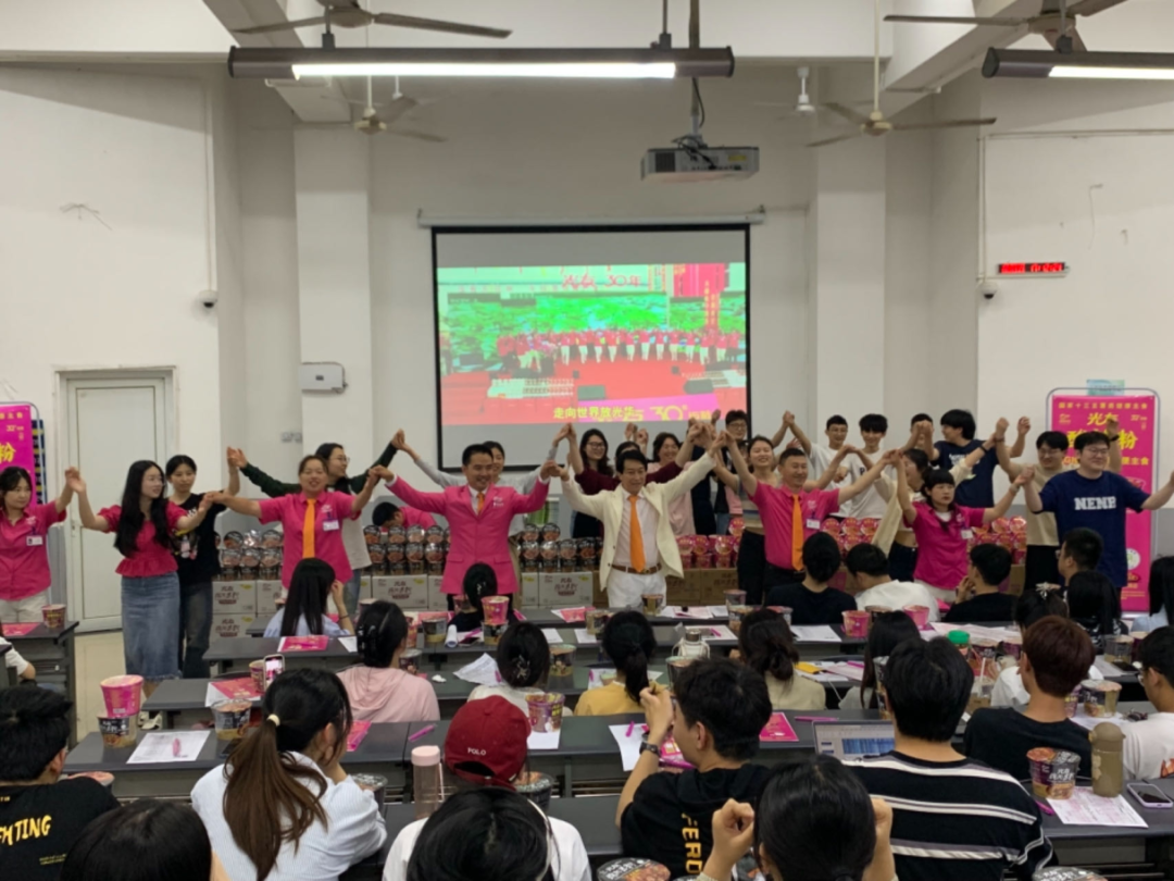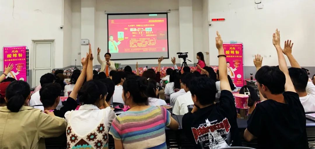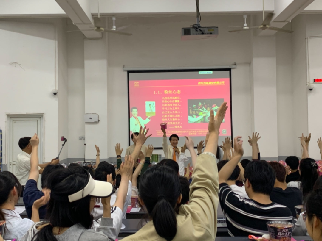 演講過程中,光友薯業(yè)董事長強(qiáng)調(diào),他與光友薯業(yè)始終不忘初心,從未停止過改變紅薯命運(yùn)的偉大愿景,光友薯業(yè)在32年間,共進(jìn)行了六次具有歷史突破性的粉絲革命,先后斬獲國內(nèi)外多項榮譽(yù)與專利,并在不久前全新發(fā)明了全球領(lǐng)先的低GI健康薯類主食——光友綿陽米粉和光友酸辣粉,科學(xué)健康和方便美味完美相融,該類粉絲一經(jīng)亮相,便立即受到了業(yè)內(nèi)外的認(rèn)可與追捧。現(xiàn)場同學(xué)食指大動,也對光友這個國貨老品牌有了全新的認(rèn)知。