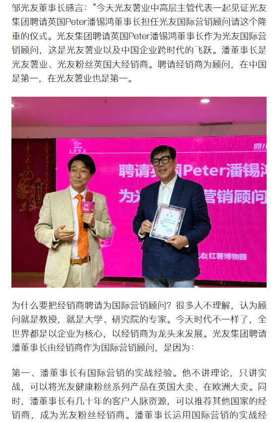 轉(zhuǎn)載搜狐網(wǎng)-光友薯業(yè)攜手國(guó)際營(yíng)銷顧問(wèn) 讓中國(guó)健康粉絲登陸全球超市