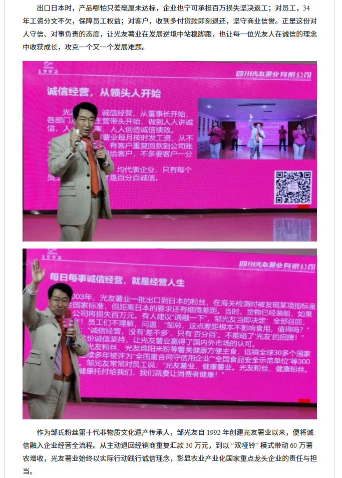 轉(zhuǎn)載四川經(jīng)濟(jì)新聞網(wǎng) 鄒光友專題直播《誠(chéng)信經(jīng)營(yíng)企業(yè) 誠(chéng)信經(jīng)營(yíng)人生》